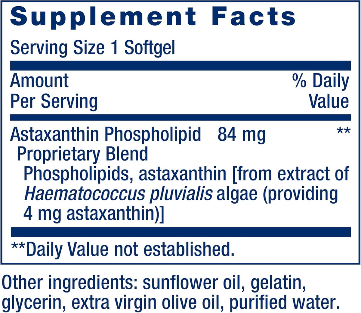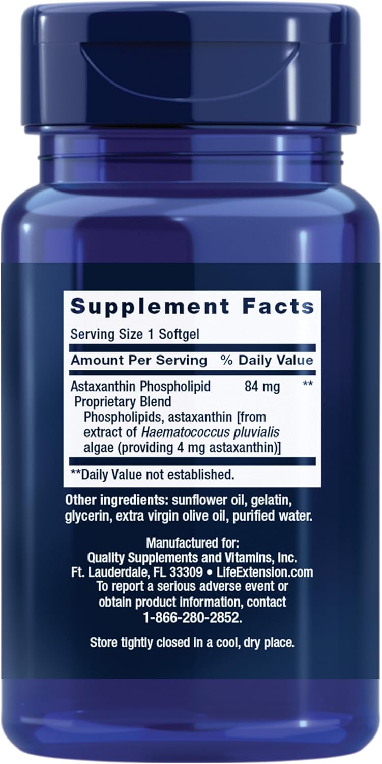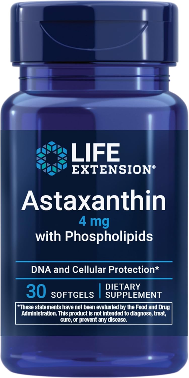 Life Extension Astaxantina con Fosfolípidos – Apoyo antioxidante, salud ocular – Derivado de algas – Sin gluten, sin OGM – 30 cápsulas blandas. Mezcla patentada de fosfolípidos de astaxantina, los fosfolípidos de girasol mejoran la absorción, favorece la salud cognitiva y de la memoria