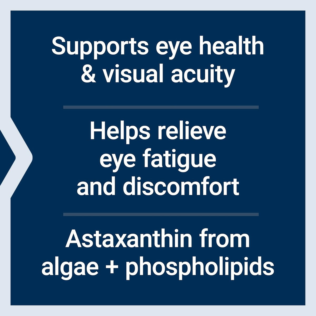 Salud ocular: la astaxantina favorece la salud ocular: este antioxidante ayuda a aliviar la fatiga ocular general, mejora la agudeza visual y ayuda a aliviar las molestias ocasionales asociadas con la fatiga visual.
