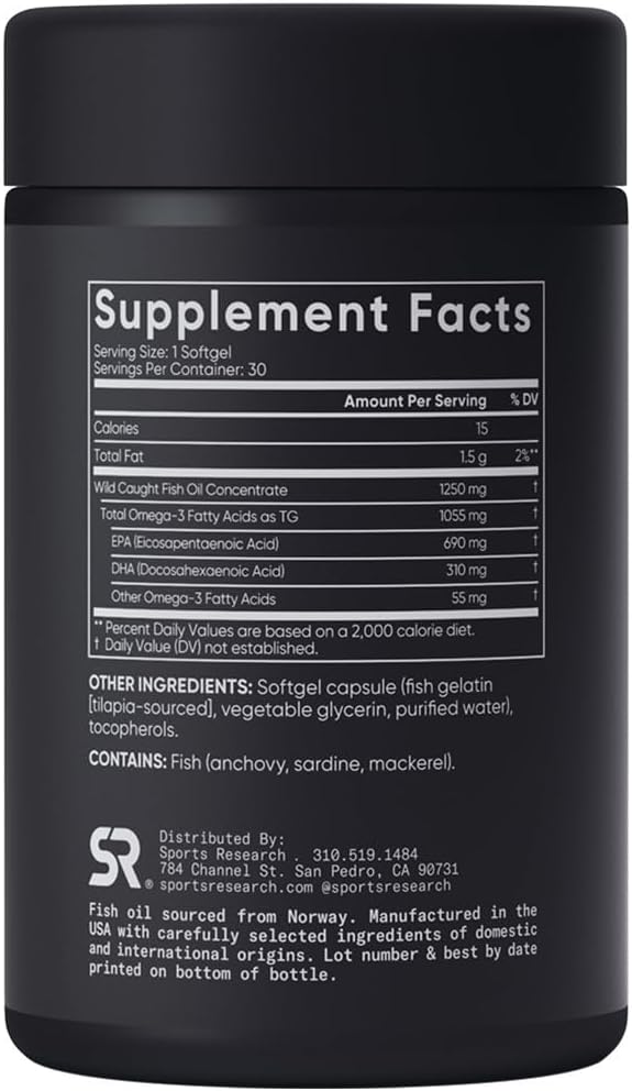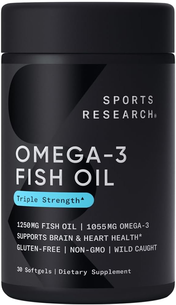 Sports Research Aceite de pescado omega-3, triple fuerza, cápsulas blandas.