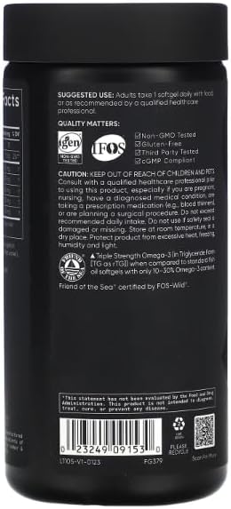 Absorción superior: Formulado en forma de triglicéridos para mejorar la biodisponibilidad, asegurando una absorción eficiente de ácidos grasos esenciales. Omega 3 de triple fuerza de Sports Research para adultos. 3 veces el EPA / DHA en una cápsula blanda.