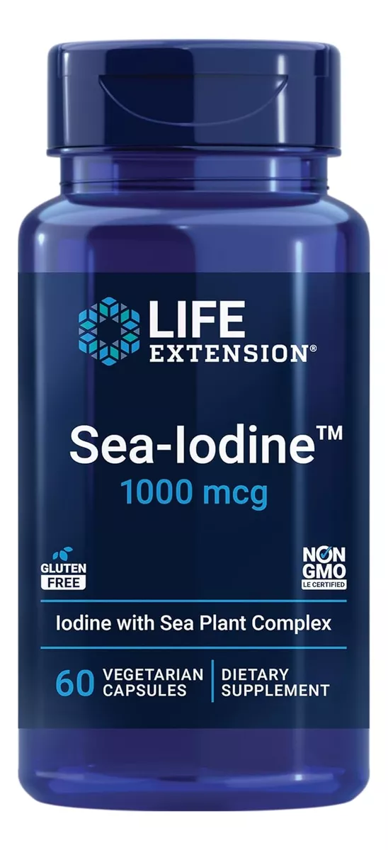 Life Extension Sea-yodine 1000 mcg – Píldoras de suplemento de yodo sin sal – Yodo de extractos orgánicos de algas y vejiga – Sin gluten, sin OMG, vegetariano – cápsulas