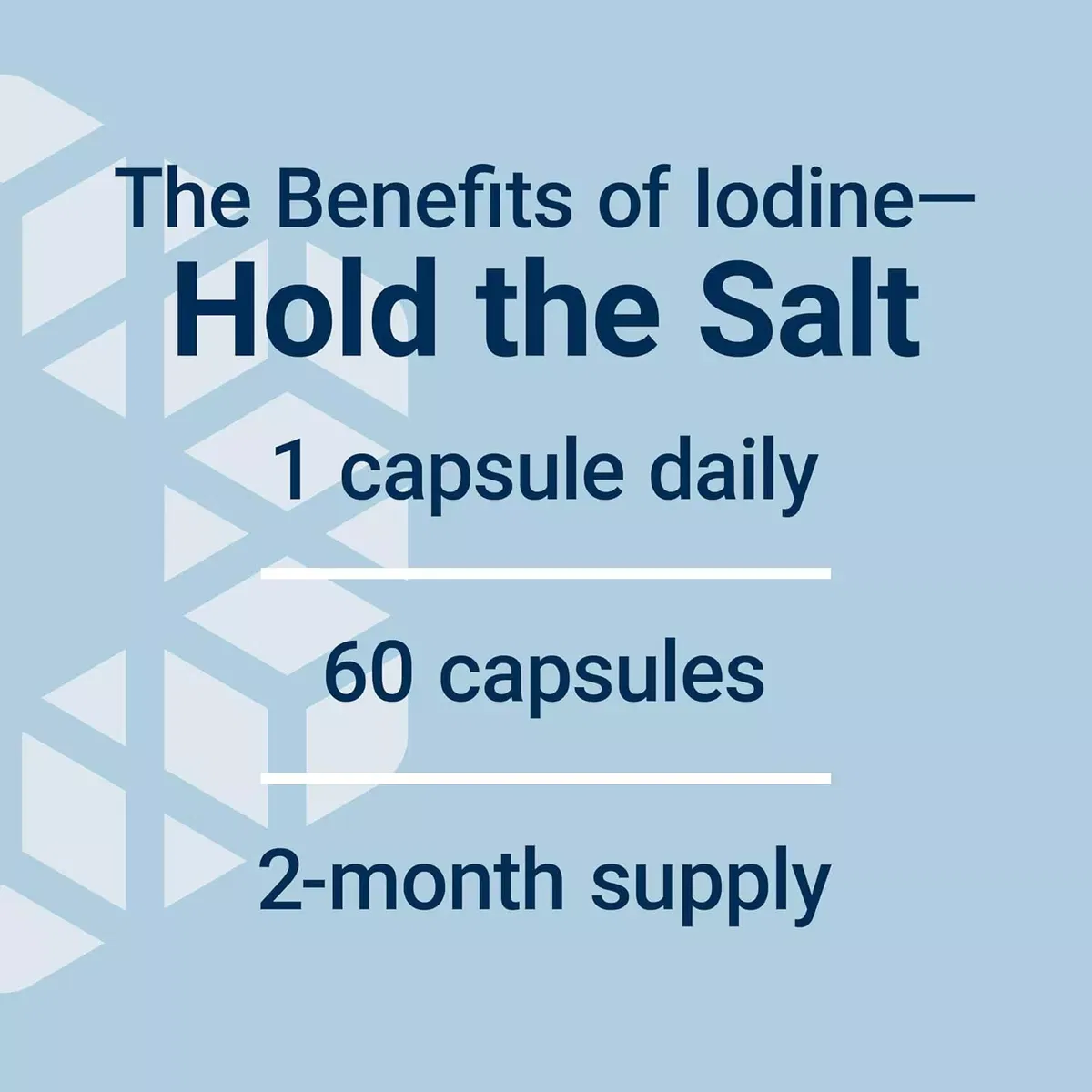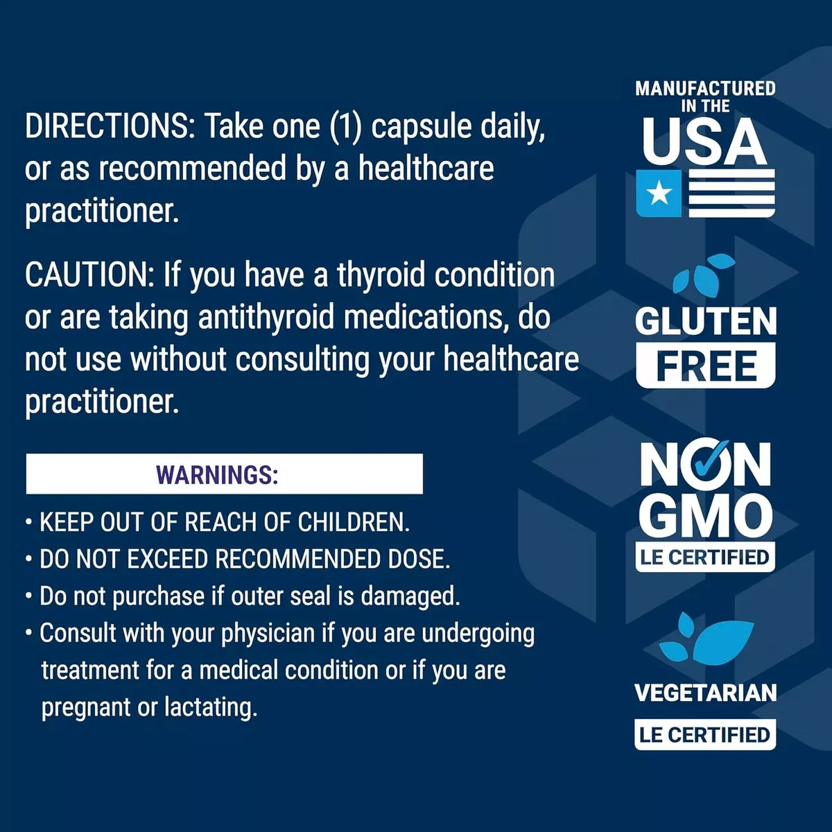 Salud de la tiroides y más allá: el yodo es un oligoelemento que promueve la salud que es esencial para la buena salud, y generalmente se encuentra dentro de mariscos y sal yodada. Nuestra fórmula de yodo marino proporciona 1000 mcg para apoyar niveles saludables de este elemento esencial
