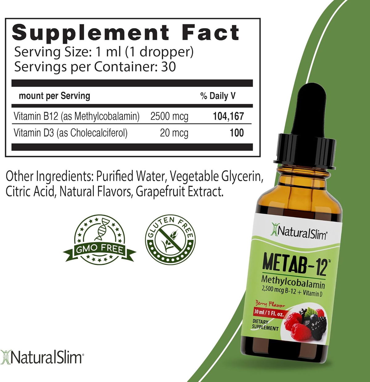 Metab-12 | Berry Liquid Vitamin B-12 (methylcobalamin) + Vitamin D