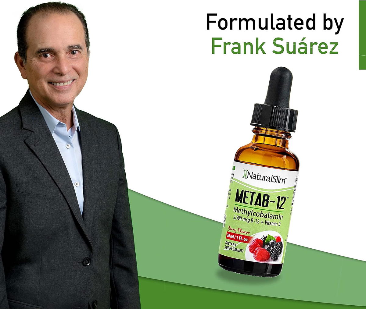El METAB-12™ es un suplemento liquido único con una fórmula especial compuesta de Vitamina B12 y Vitamina D, las cuales proveen beneficios al metabolismo y a las funciones vitales del cuerpo.