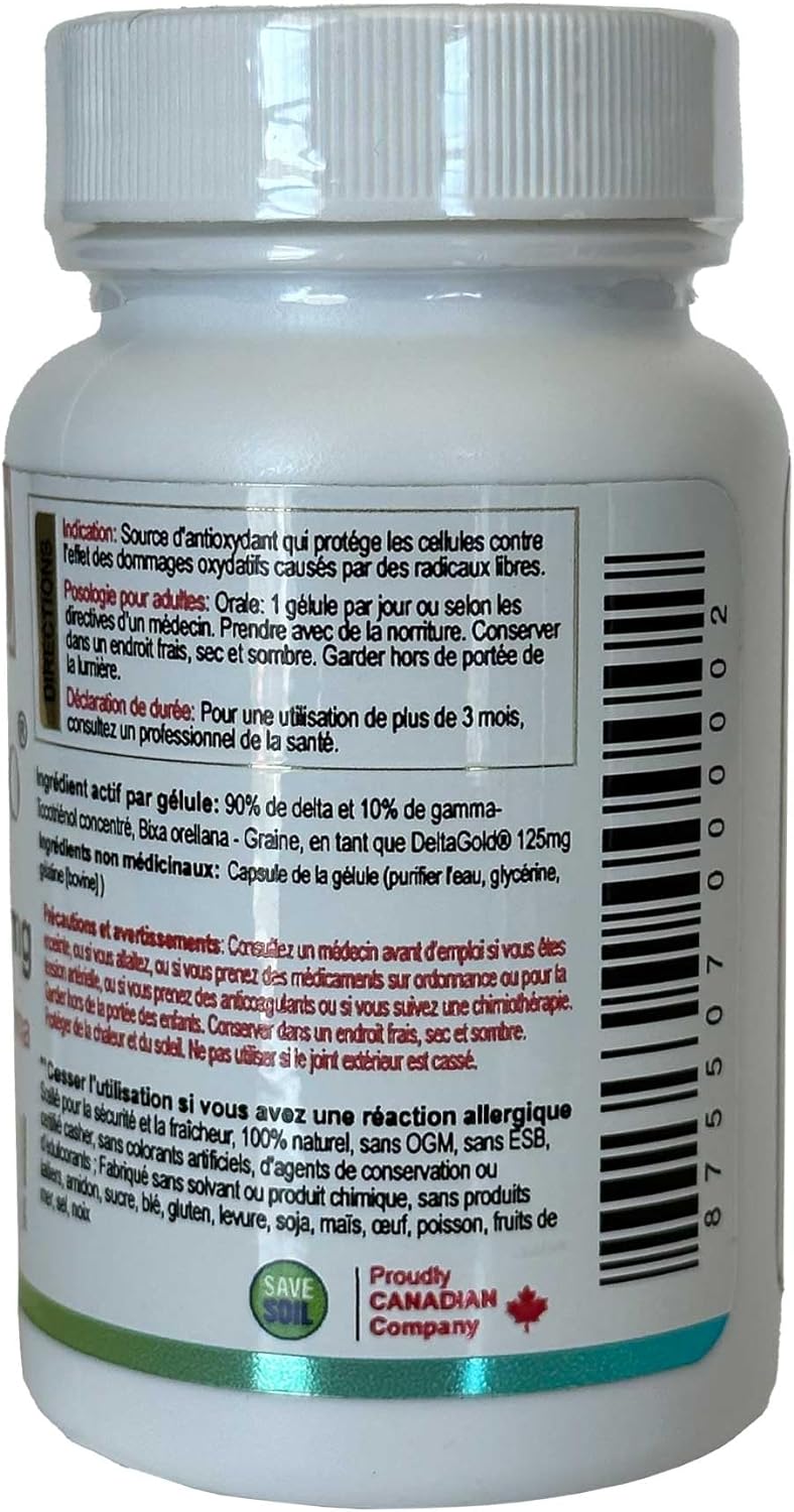 Eannatto Tocotrienoles Deltagold Vitamina E Suplementos blandos, sin tocoferol, apoya la salud inmunológica, sin OMG, sin gluten y antioxidante (125 mg -cápsulas blandas).