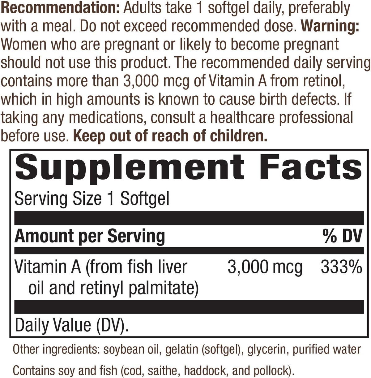 Vitamina A (de aceite de hígado de pescado y palmitato de retinilo); aceite de soja; gelatina (softgel); glicerina; agua purificada.