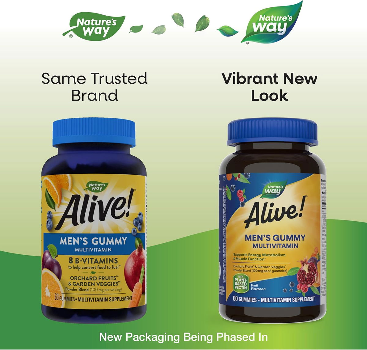 Las gomitas Alive! para hombre ayudan a: convertir los alimentos en energía, corazón, ojos, inmunidad y músculos.