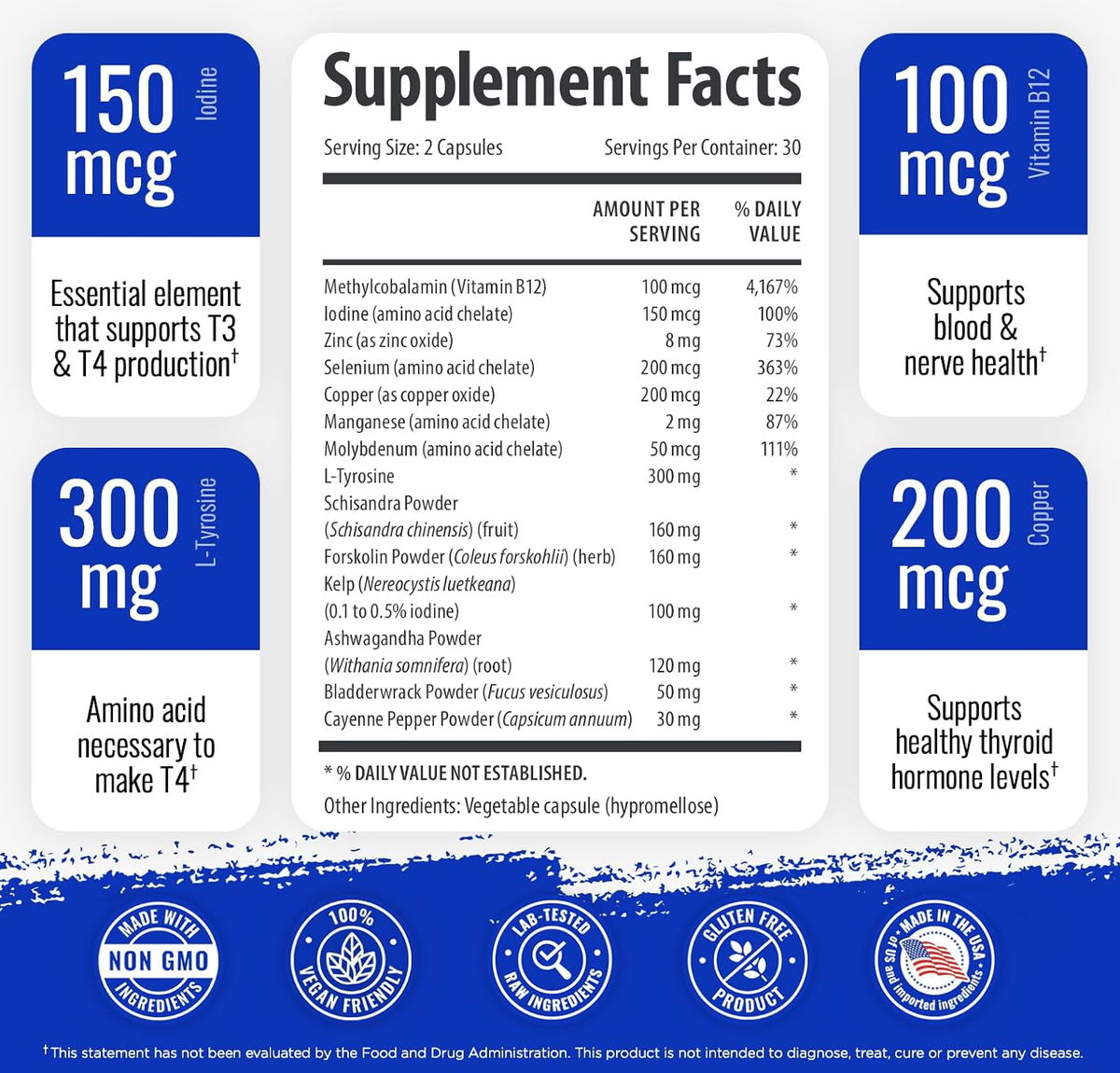 Apoya la función tiroidea saludable: con nuestro poderoso complejo tiroideo, que contiene nutrientes clave que promueven la salud y la función de la tiroides
