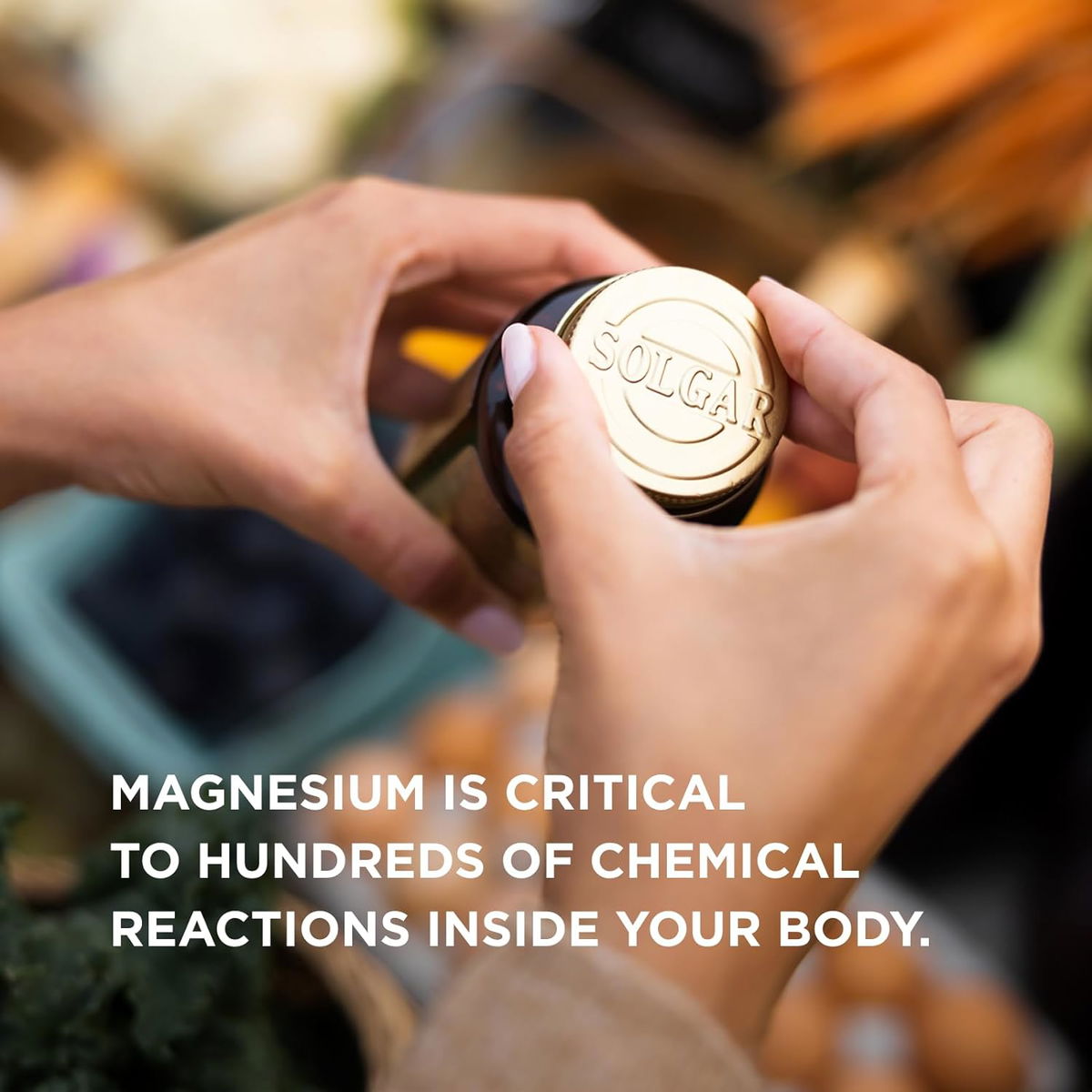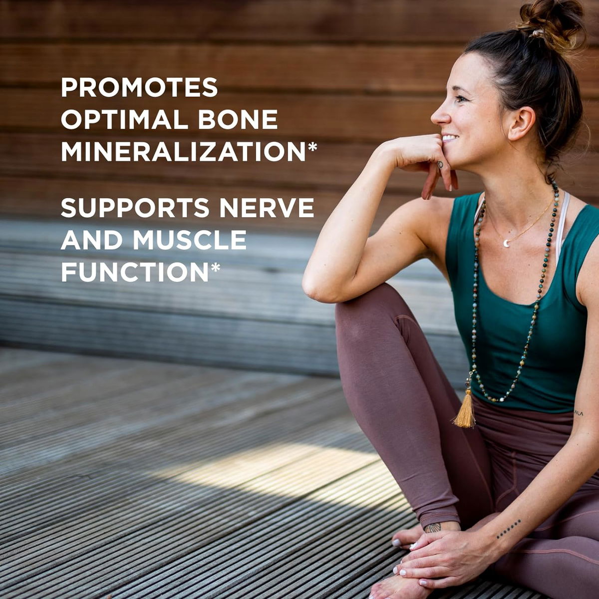 Promueve huesos saludables; el magnesio ayuda a regular el transporte y la absorción de calcio; al estimular la secreción de calcitonina, ayuda a la entrada de calcio en el hueso y promueve una mineralización óptima ósea