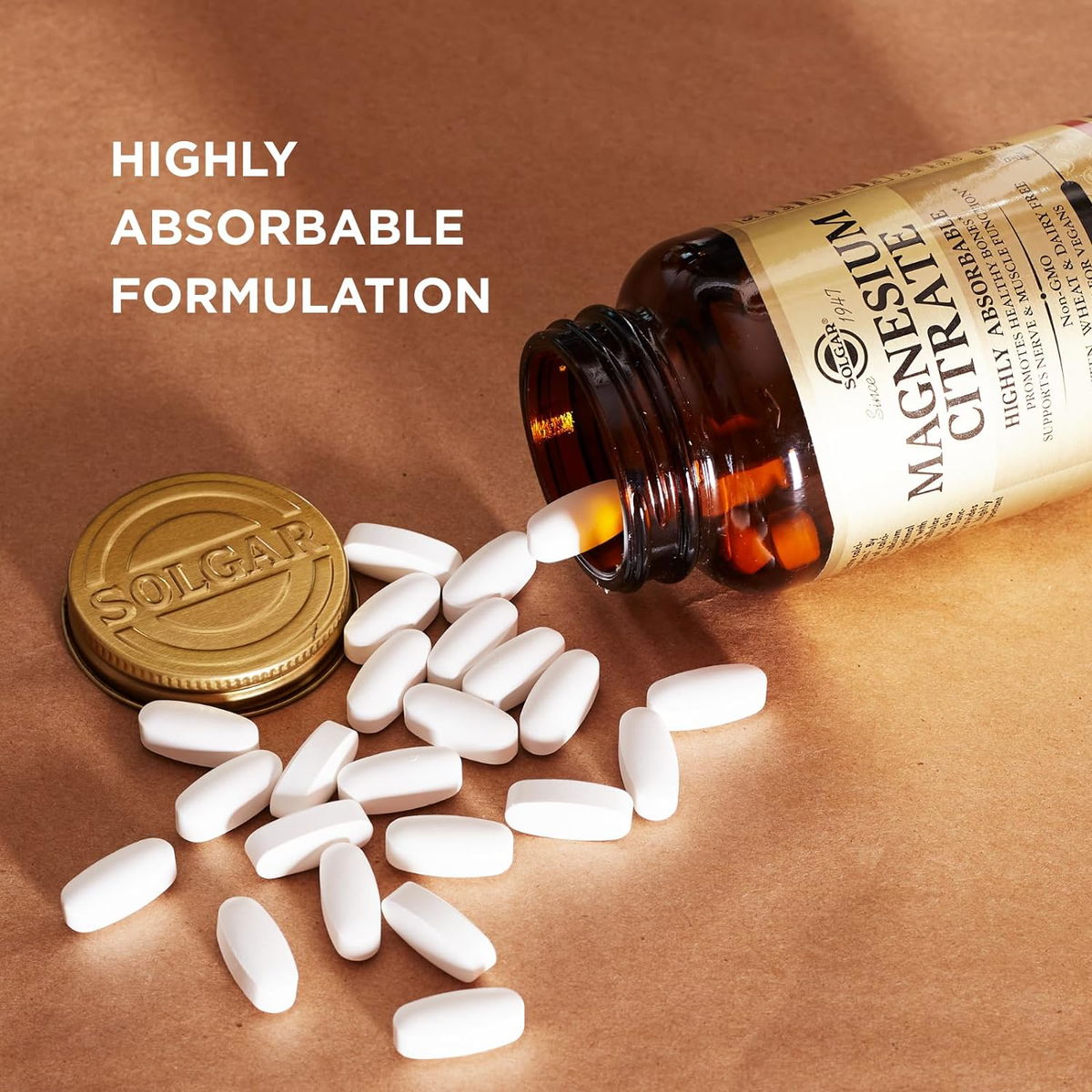 SOLGAR MAGNESIUM CITRATE Solgar Citrato de magnesio, comprimidos, promueve huesos saludables, apoya la función nerviosa y muscular, sin OMG, vegano, sin gluten, sin lácteos, Kosher.