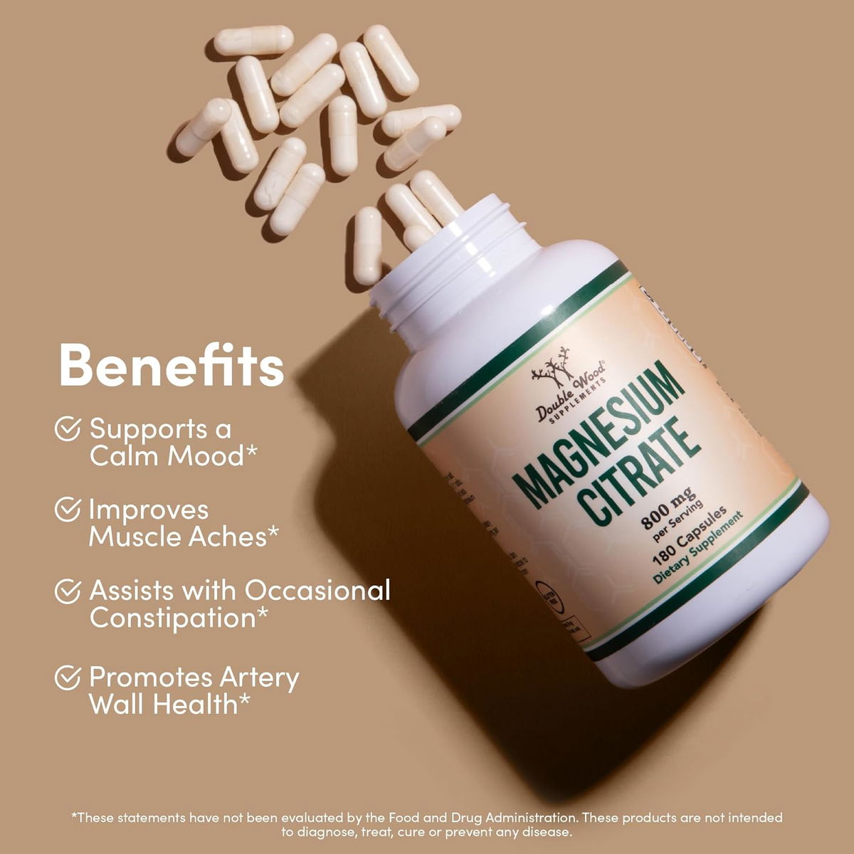 Cápsulas de citrato de magnesio cápsulas (Citrato de Magnesio) porciones de 800 mg, aptas para veganos, sin OMG, sin gluten Double Wood Supplements.