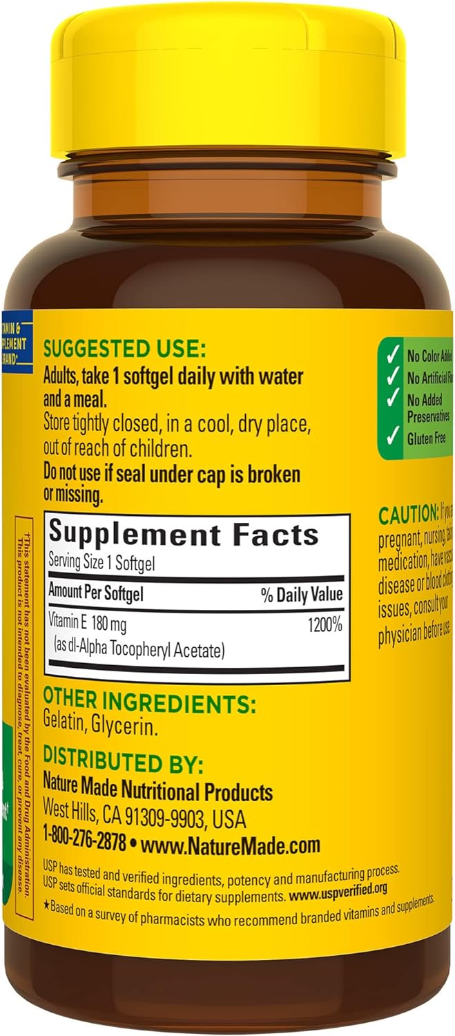 Nature Made Vitamina E 180 mg (400 UI) dl-alfa, suplemento dietético para apoyo antioxidante