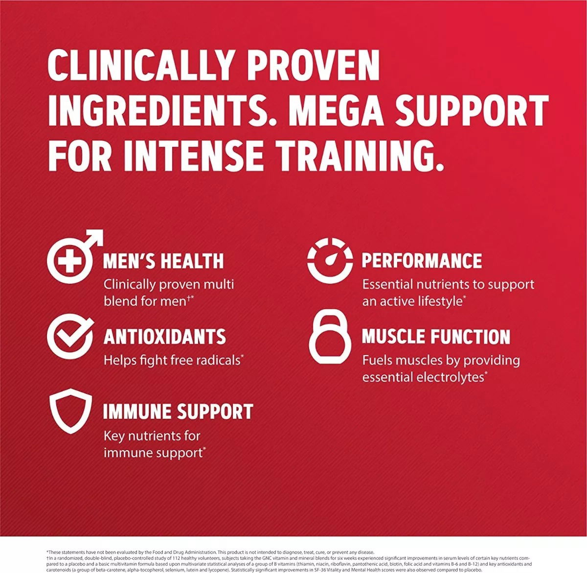GNC Mega Men Sport: un multivitamínico clínicamente estudiado. Supera a la competencia con un multivitamínico deportivo lanzado por el tiempo. Dar todo en el gimnasio o en el campo puede causar que pierdas vitaminas clave a través del sudor. GNC Mega Men Sport utiliza tecnología de liberación programada para ofrecer una mezcla multivitamínica de alta potencia clínicamente que se ha demostrado que funciona mejor que un multivitamínico básico y clínicamente probado para mejorar los niveles de nutrientes y los sentimientos de bienestar mental. Rendimiento y energía de siguiente nive
