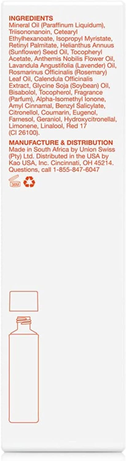 Aceite mineral (paraffinum liquidum), triisononanoína, etilhexanoato de cetearilo, miristato de isopropilo, palmitato de retinilo, aceite de semilla de helianthus annuus (girasol), acetato de tocoferilo, aceite de flor de anthemis nobilis, aceite de lavandula angustifolia (lavanda), aceite de hoja de rosmarinus officinalis (romero), caléndula Extracto de Officinalis, aceite de glicina de soja (soja), bisabolol, tocoferol, fragancia (parfum), alfa-isometil ionona, amilo cinamal, salicilato de bencilo, citronelol, cumarina, eugenol, farnesol, geraniol, hidroxicitronelal, limoneno, linalol.