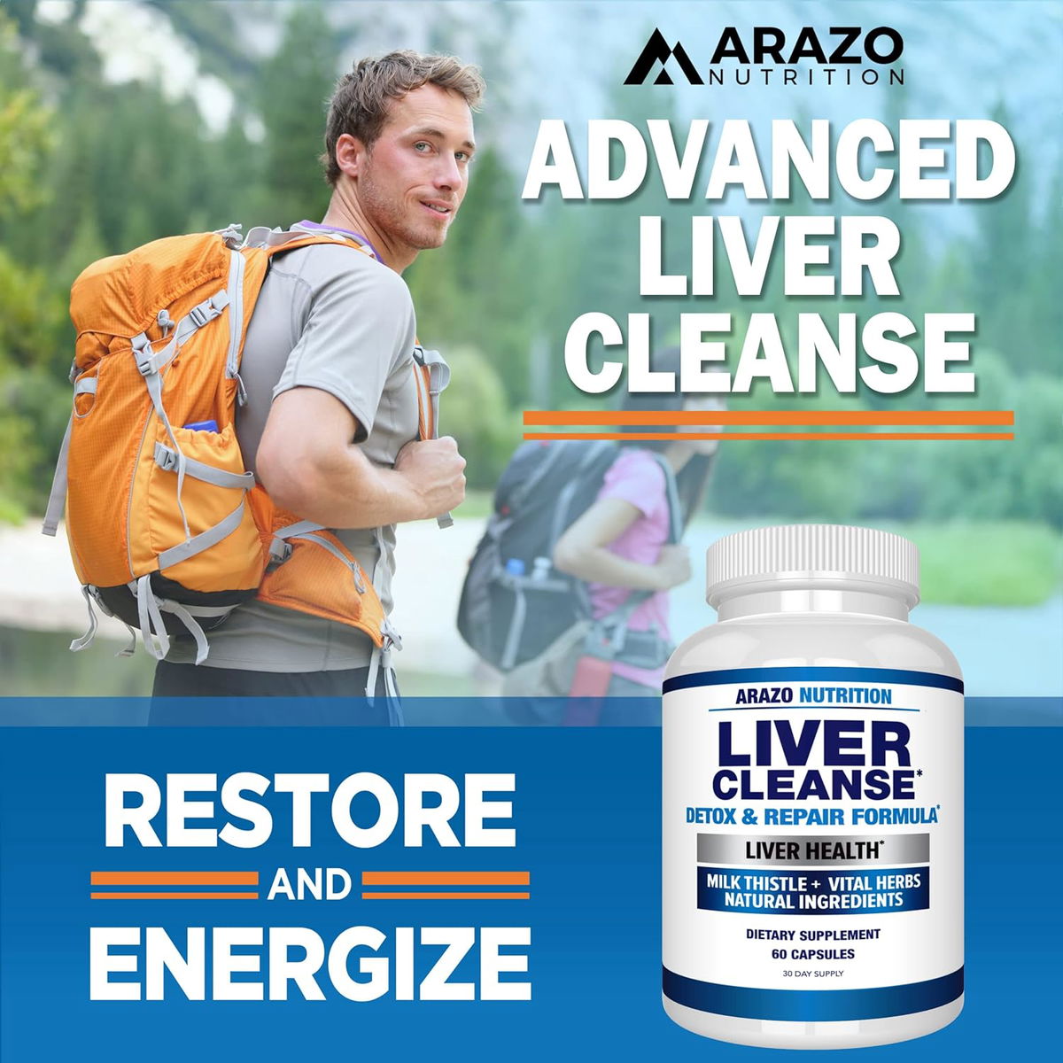 Arazo Nutrition Fórmula de desintoxicación y reparación del hígado – Suplemento de apoyo a base de hierbas de cardo mariano: silimarina, remolacha, alcachofa, diente de león, raíz de achicoria