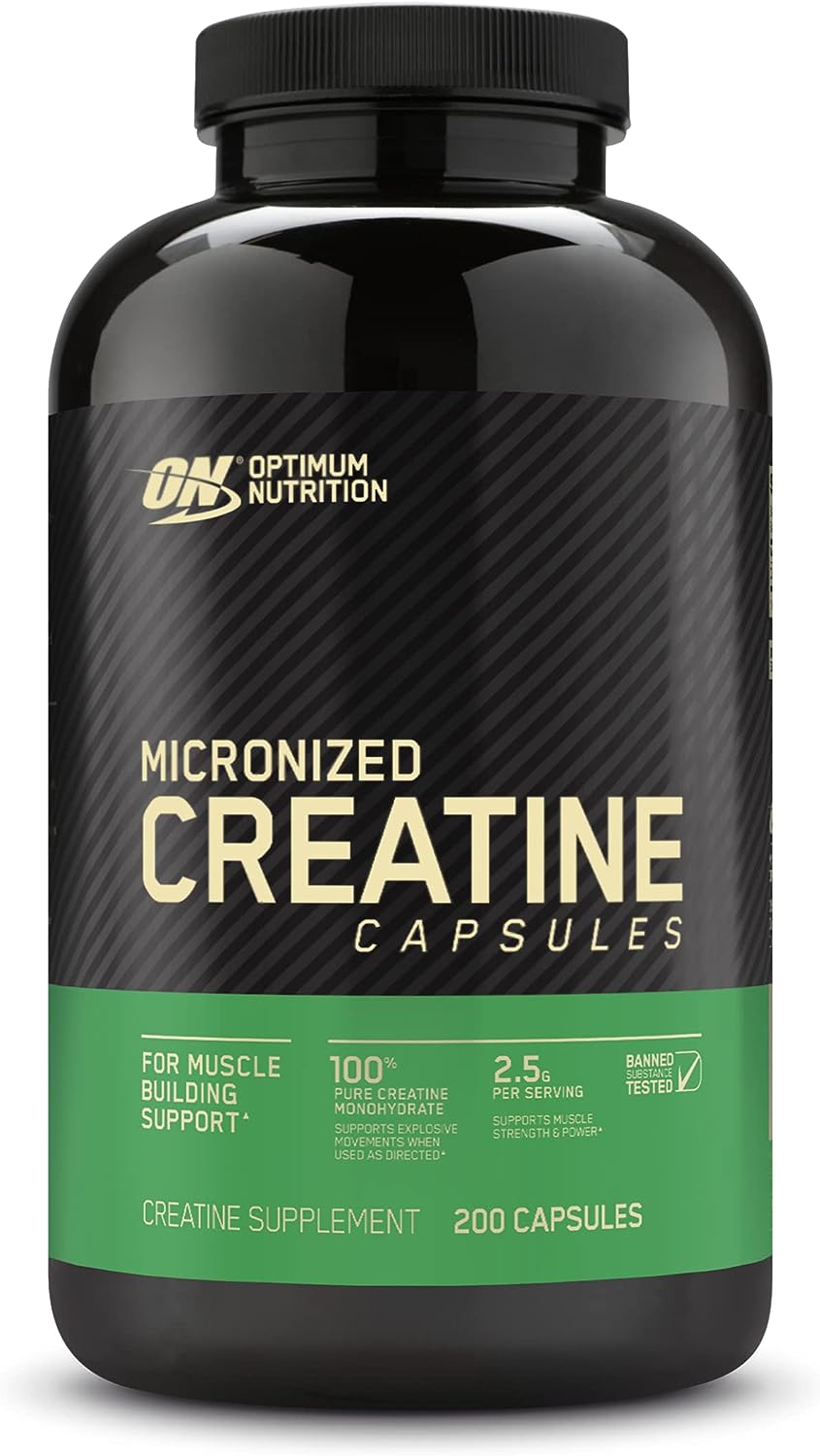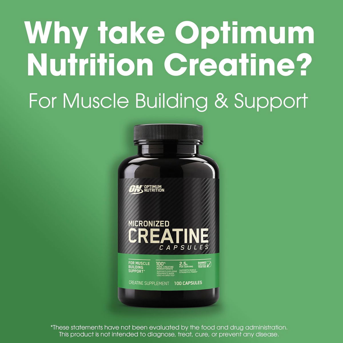 Creatina de Optimum Nutrition. Cápsulas fáciles de tragar. Monohidrato de creatina pura de 0.09 oz por porción