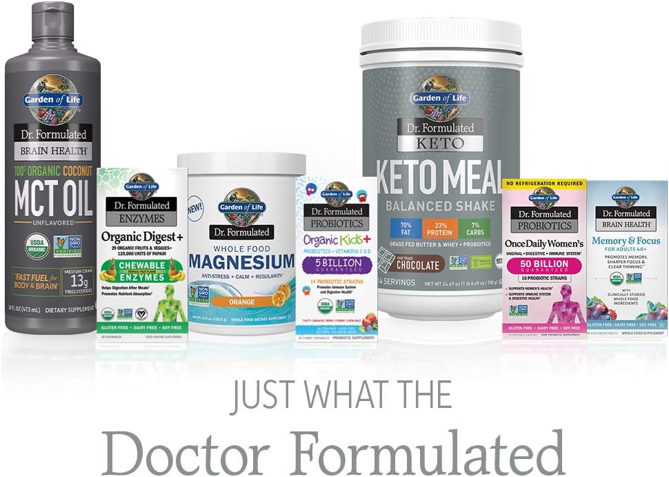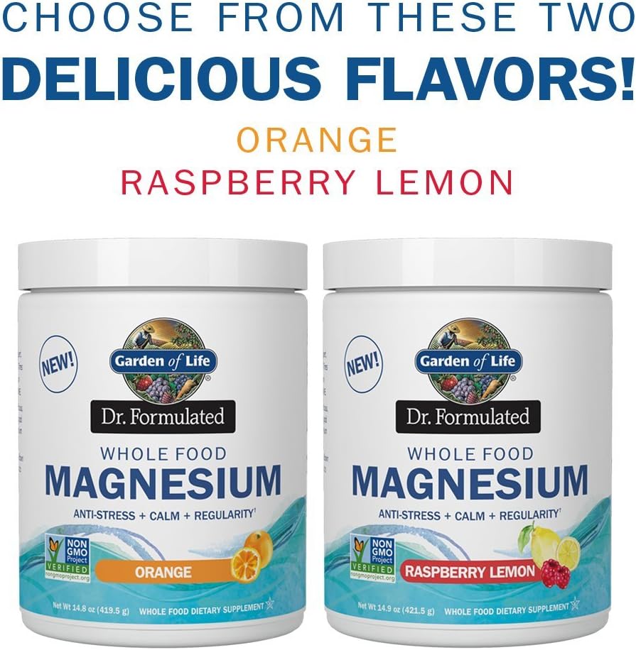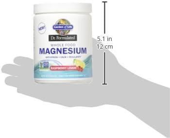 Garden of Life Dr. Formulated Whole Food Magnesio 14.87 oz en polvo, limón frambuesa, suplemento quelado sin OMG vegano Kosher sin gluten y azúcar con probióticos, lo mejor para calmar y regularidad antiestrés. Contiene probióticos vivos: 1 mil millones de CFU