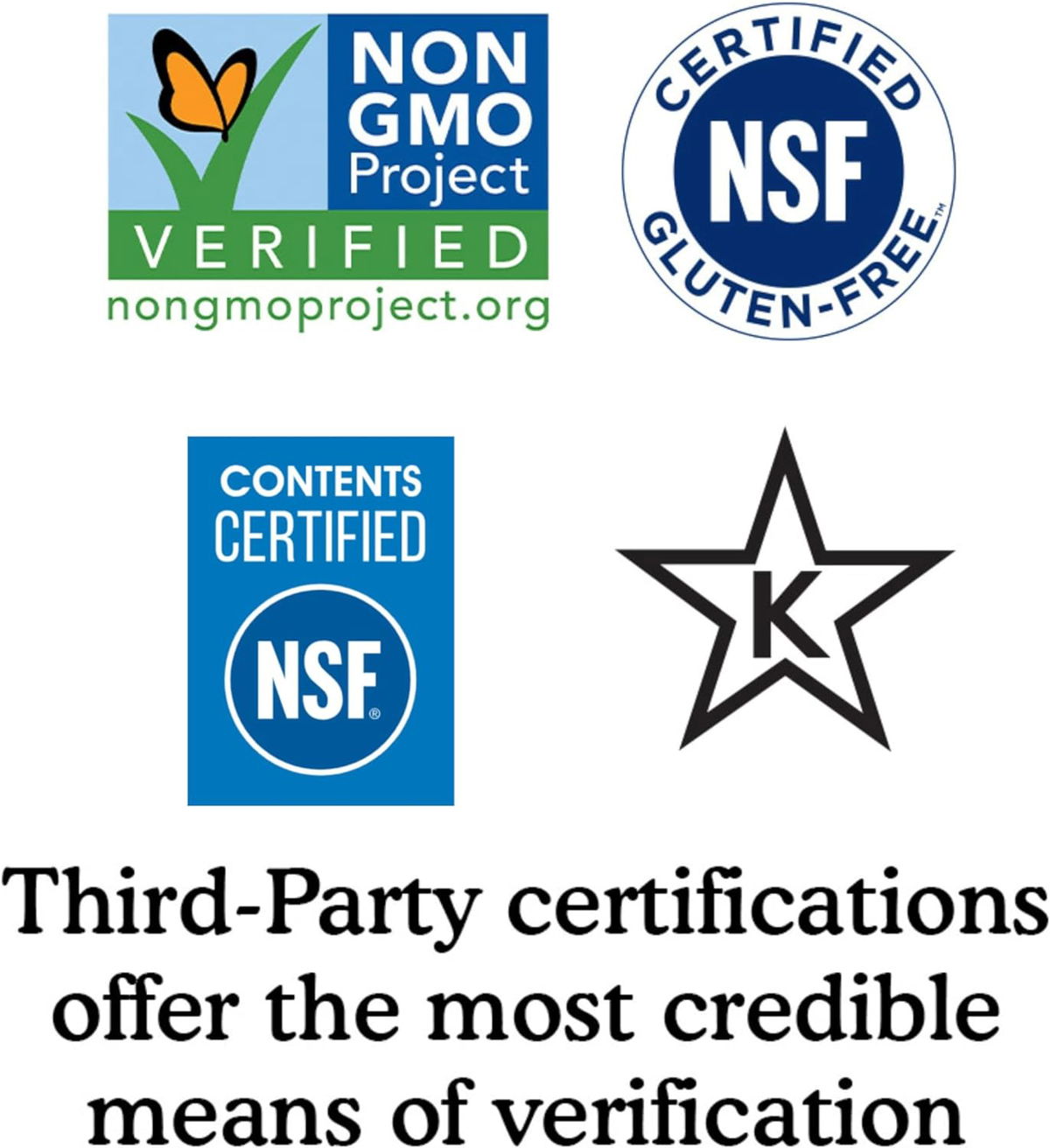 Proyecto verificado sin OMG, certificado vegano, certificado NSF sin gluten, sin azúcar, Star K Kosher