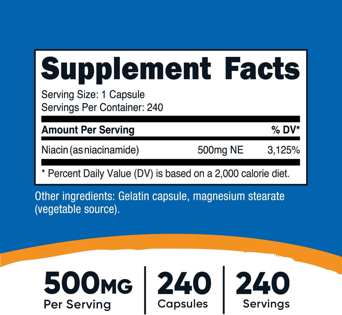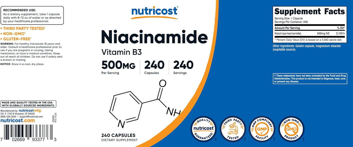 Esta es Nutricost Niacinamida, también conocida como Vitamina B3. Hay 500 mg de niacinamida potente y de alta calidad en cada porción. Fabricado en una instalación compatible con GMP