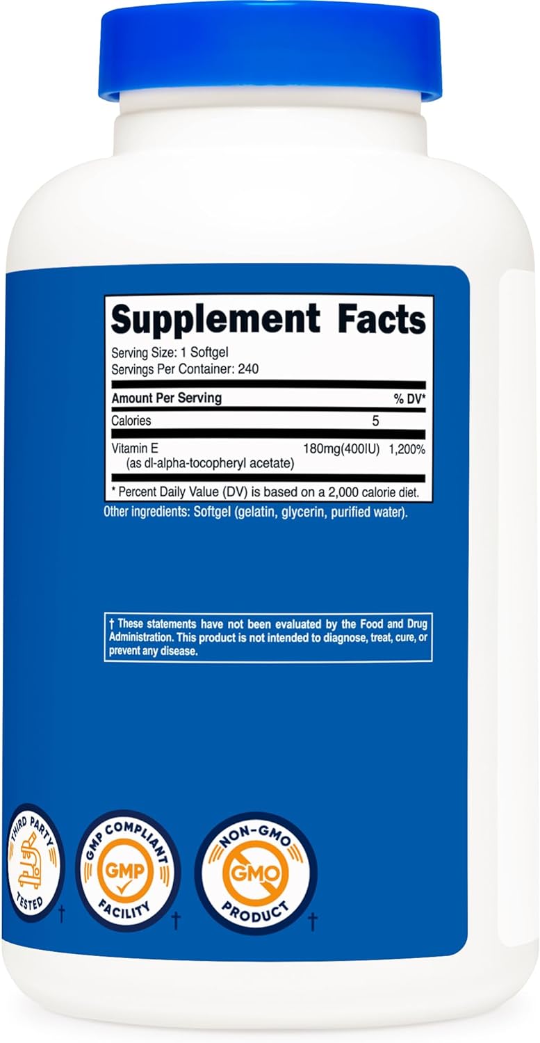 Nutricost Vitamina E 400 UI, 240 cápsulas de cápsulas blandas, sin gluten, sin OMG