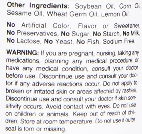 Ingredientes activos: Por 5 gotas (0.0 fl oz): Vitamina E (como acetato de tocoferilo d-alfa) 100 UI; aceite de soja; aceite de maíz; aceite de germen de trigo; aceite de sésamo; aceite de limón.