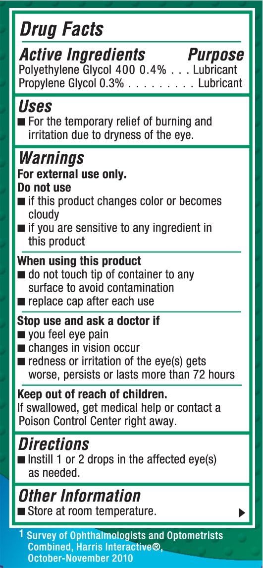 Estas gotas lubricantes para los ojos dejan los ojos con una sensación de frescura, brindándole alivio y protección duradera contra los síntomas leves del ojo seco, que incluyen: