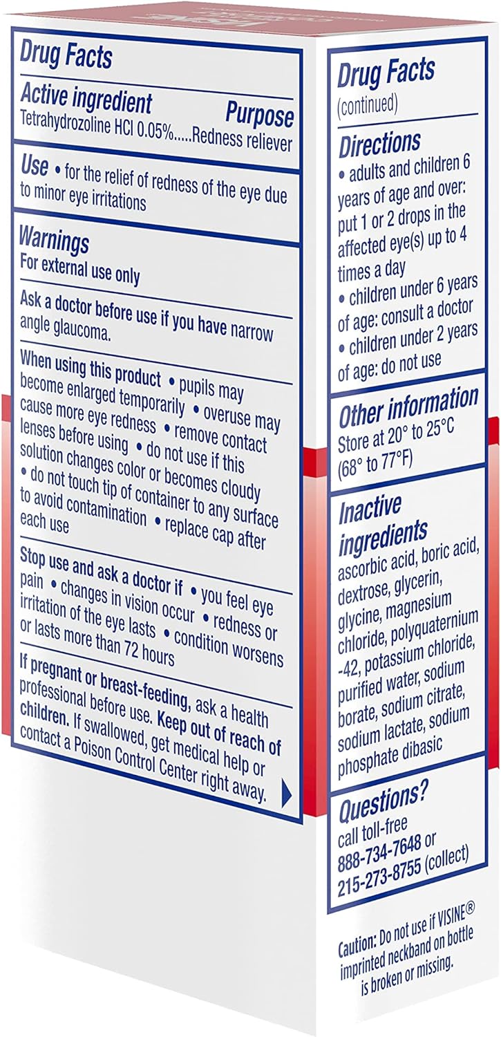 Visine Red Eye Comfort Redness Relief Eye Drops to Help Relieve Red Eyes Due to Minor Eye Irritations Fast, Tetrahydrozoline HCl.