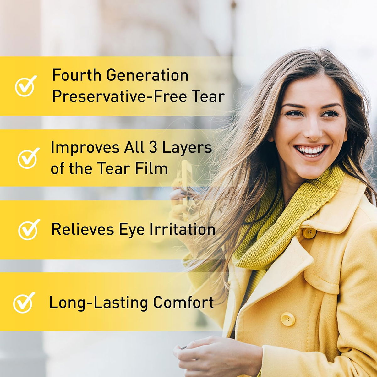 Tecnología patentada tensoactivo emulsión de aceite que ofrece ingredientes a través de atracción de forma efectiva entre gotas de carga positiva y la superficie cargados negativamente ocular. El hipo tonicidad de la emulsión añade humedad al bajar la concentración de sal de lágrimas, mientras que el componente de lípidos lubrica y protege la superficie de los ojos.
