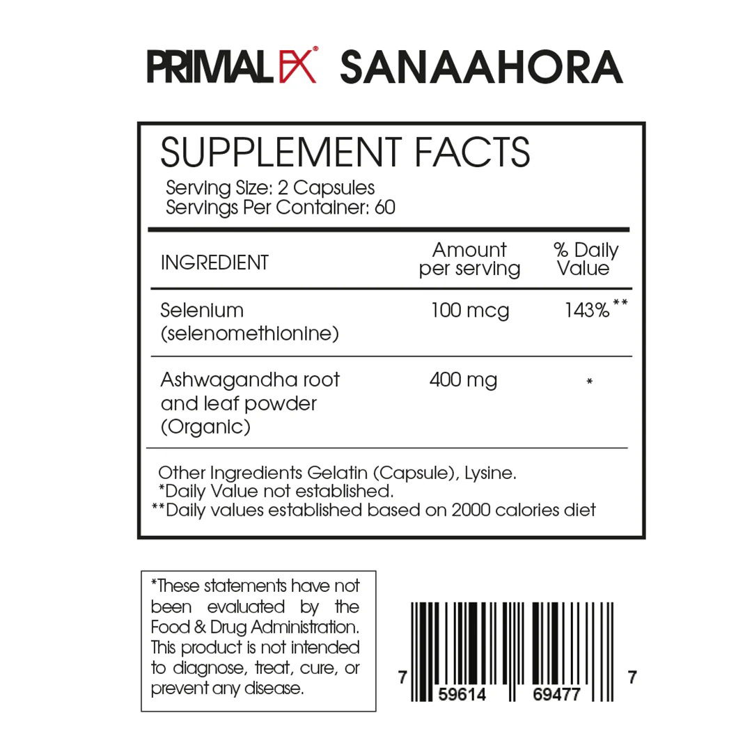 Selenio (selenometionina), raíz y hoja de Ashwaghanda (en polvo)