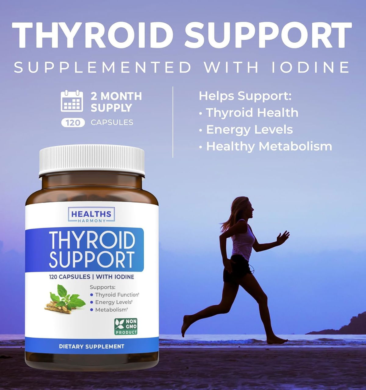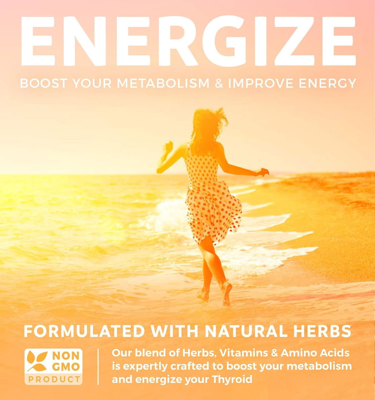 Apoyo tiroideo con yodo, cápsulas (sin OMG) mejora tu energía y aumenta el metabolismo, raíz de Ashwagandha, zinc, selenio, complejo de vitamina B12 - Suplemento para la salud de la tiroides -