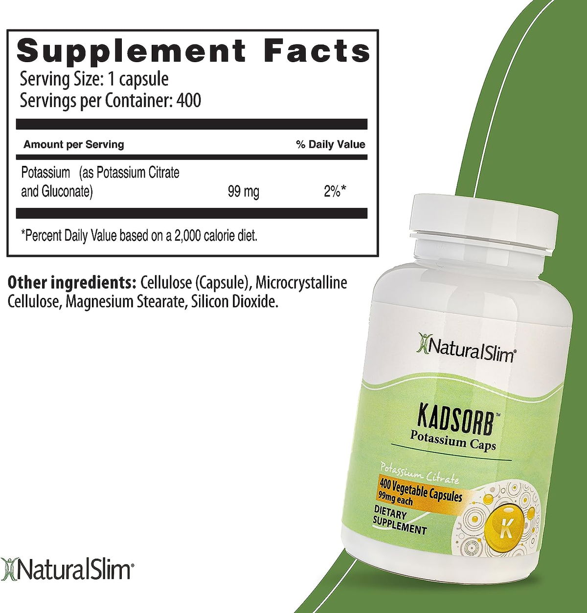 Naturalslim Kadsorb - Citrato de potasio natural - Apoya el equilibrio de electrolitos y el pH normal, sin OMG y sin gluten, suplemento de potasio absorbible con minerales esenciales, 99 mg