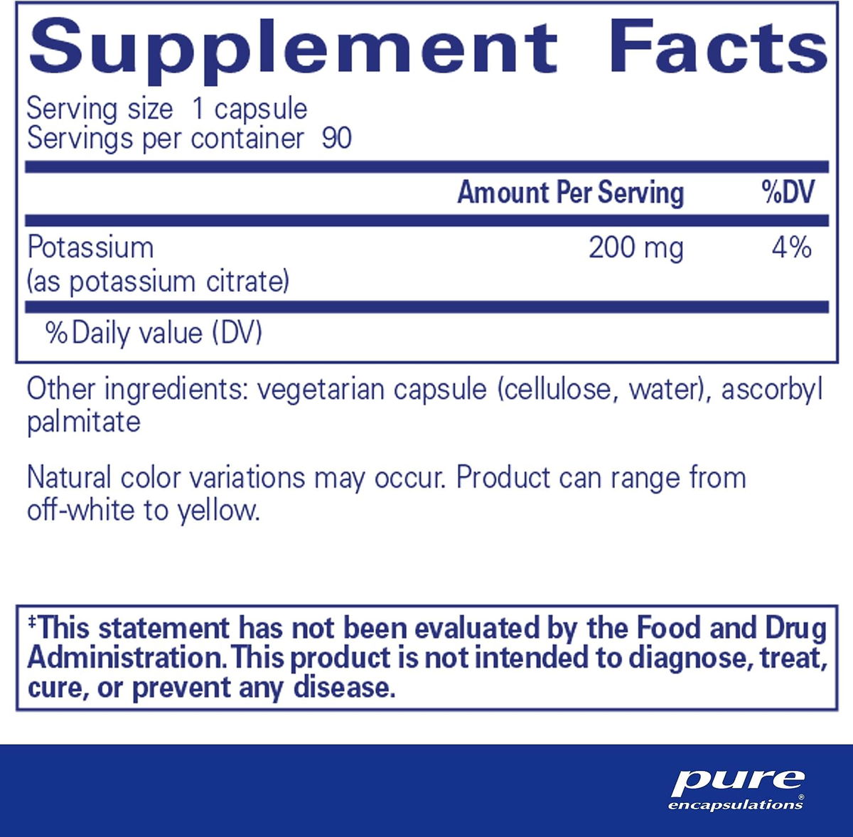 Pure Encapsulations Potasio (Citrato) | Suplemento electrolítico esencial para apoyar la función nerviosa y muscular, suprarrenales, hormonas, salud cardíaca y energía. cápsulas