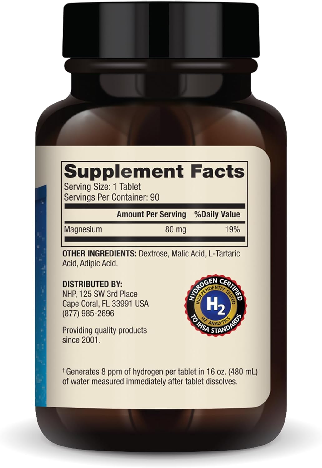 H2 Molecular Hydrogen utiliza magnesio elemental puro como vehículo y le proporciona aproximadamente 80 mg de magnesio por tableta. Por lo tanto, también recibe magnesio altamente biodisponible para un cerebro, músculos, células, riñones y corazón saludables.-