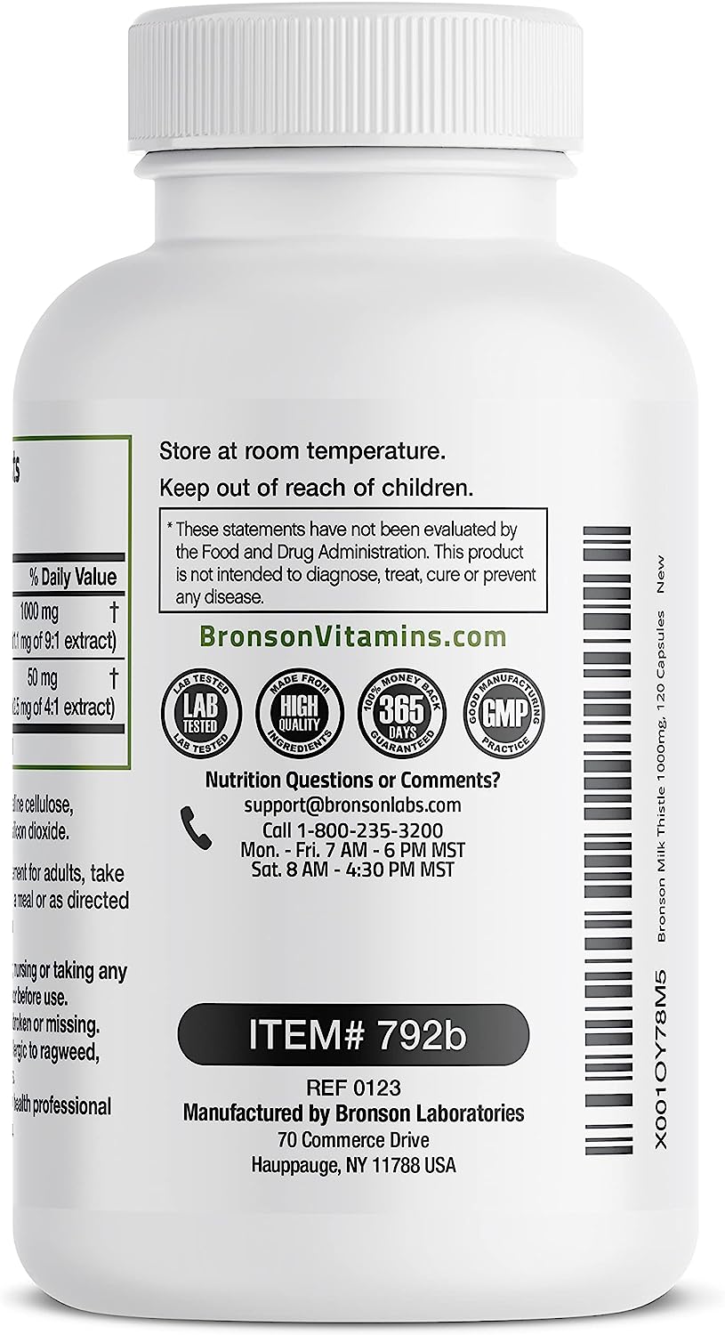 Cardo de leche Bronson 1000 mg potente antioxidante y desintoxicante