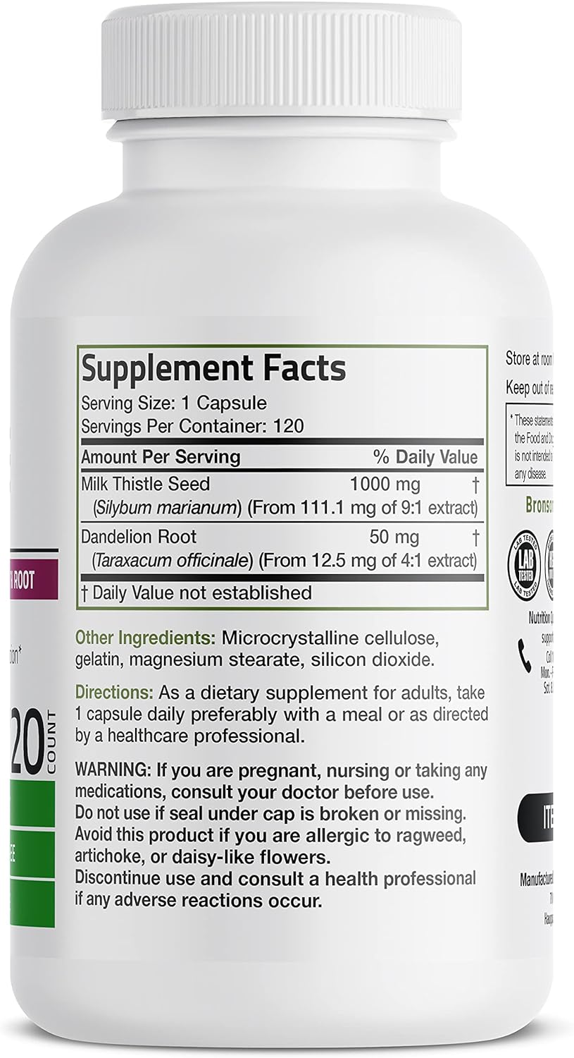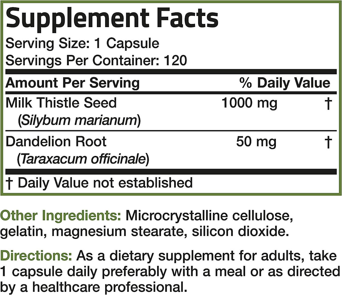 Alta potencia: Cada cápsula contiene 1,000 mg de cardo lechoso para proporcionar apoyo hepático de alta potencia y contiene 50 mg adicionales de raíz de diente de león para beneficios adicionales