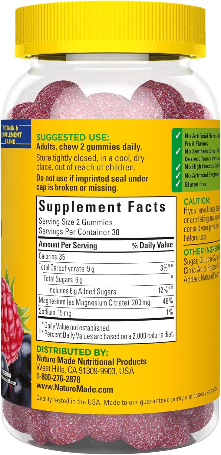 NATURE MADE MAGNESIO CITRATE GUMMIES Gomitas de citrato de magnesio de alta absorción, 200 mg