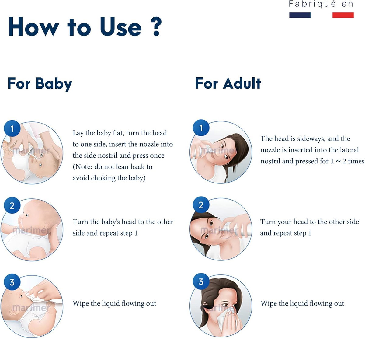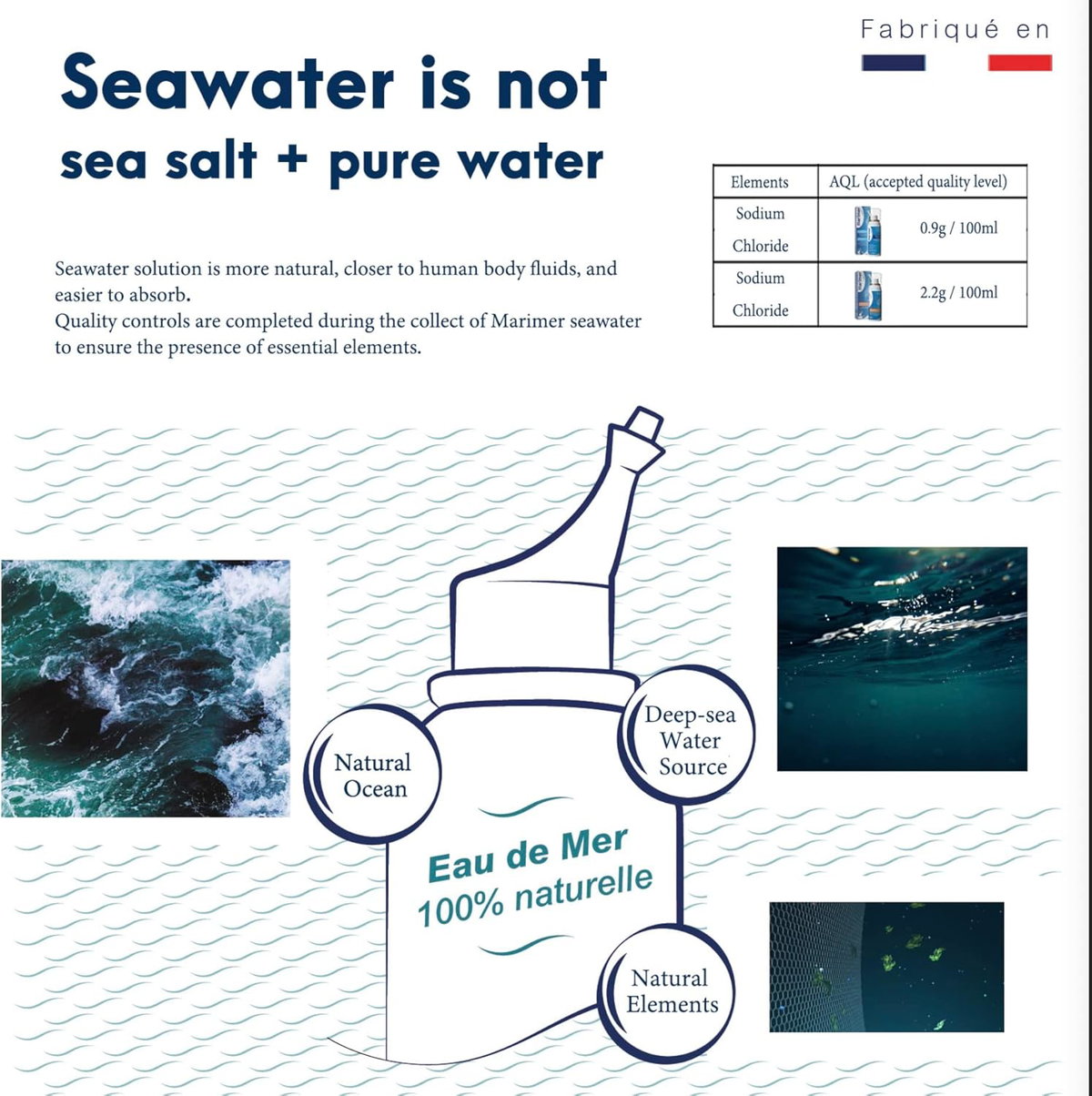 Marca francesa de confianza desde 1976: MARIMER, una marca francesa bien establecida desde 1976, es ampliamente utilizada en toda Europa y fabricada en Francia. Cuenta con un sistema presurizado estéril con una vida útil de hasta 3 años, asegurando frescura y fiabilidad a largo plazo.