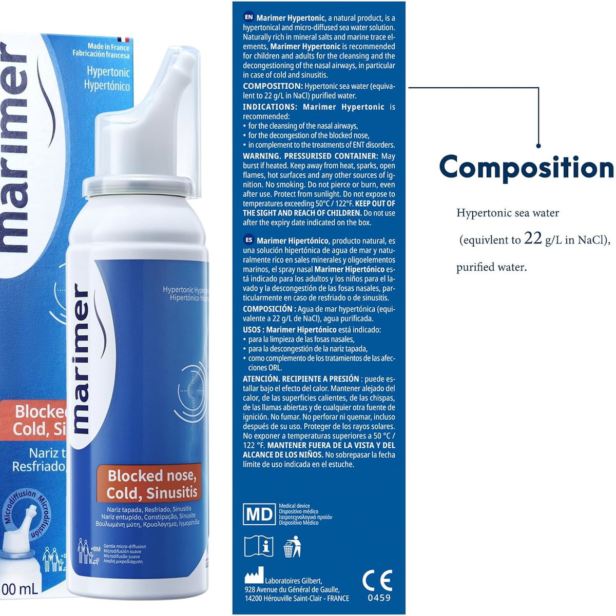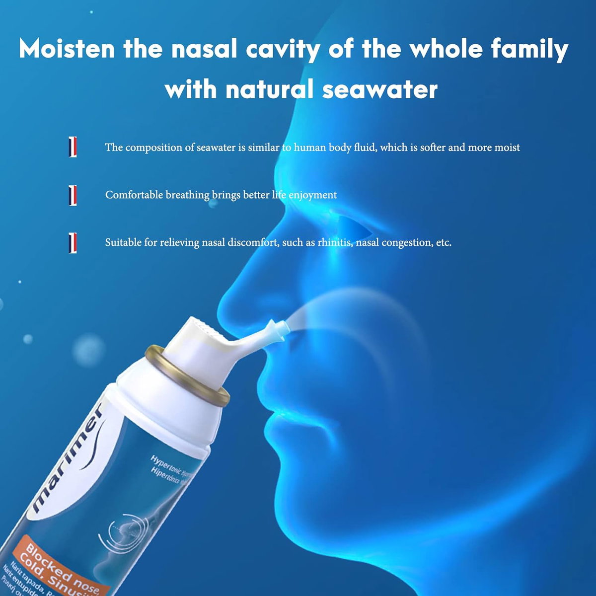 Concentración hipertónica del 2.2% para un alivio nasal rápido: con una salinidad hipertónica del 2.2%, esta solución funciona a través de la ósmosis natural para reducir la hinchazón de la mucosa nasal, ayudando a aliviar la congestión nasal, los resfriados, la secreción nasal y eliminar el polen, el polvo y los irritantes transportados por el aire de las fosas nasales.
