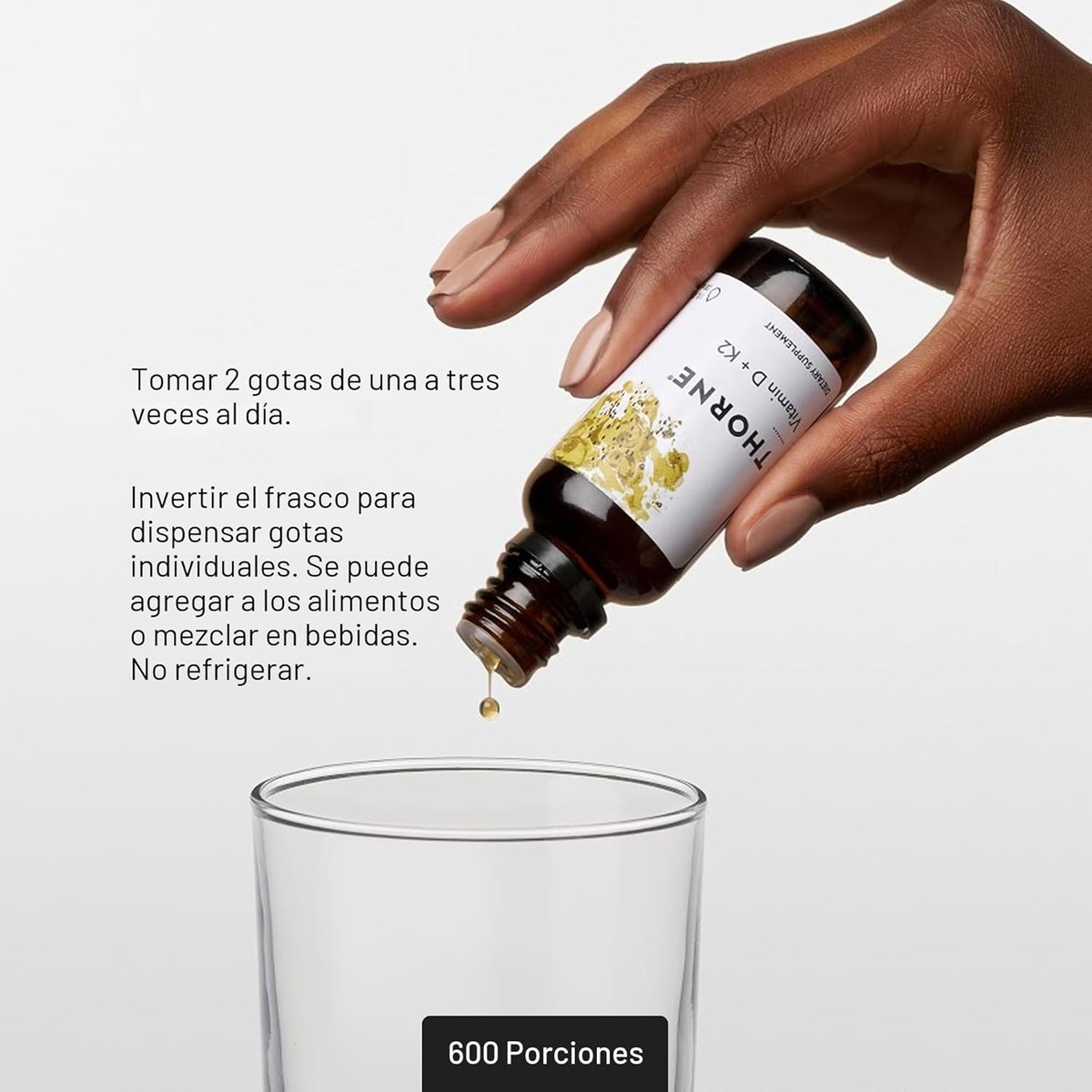 THORNE - Vitamina D + K2 Líquida con un Dosificador Medido - Vitaminas D3 & K2 para Apoyar Huesos y Músculos Saludables* - 1 Fl Oz (30 ml) - 600 Porciones.