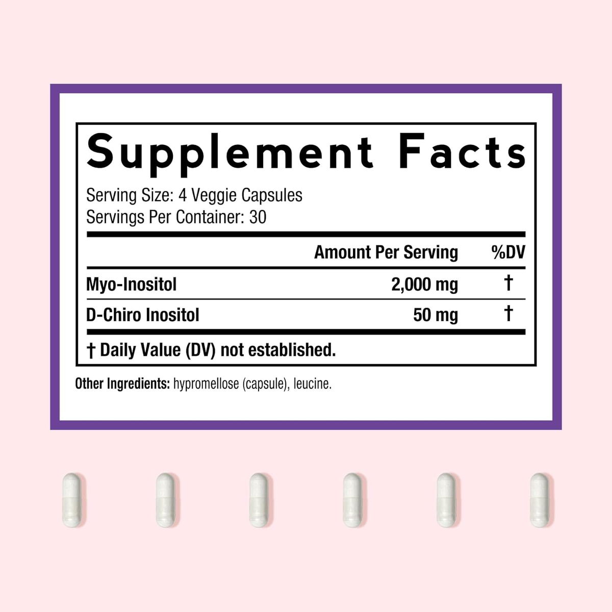 Fórmula de alta potencia: Cada porción de 4 cápsulas aporta 2000 mg de mioinositol y 50 mg de d-chiroinositol.