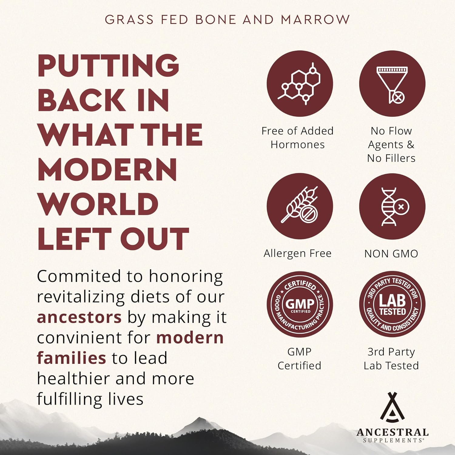 Ancestral Supplements Suplemento de hueso y médula de res alimentado con pasto, hueso, piel, salud bucal y suplemento de apoyo articular promueve el bienestar de todo el cuerpo, extracto de hueso entero sin OMG, cápsulas