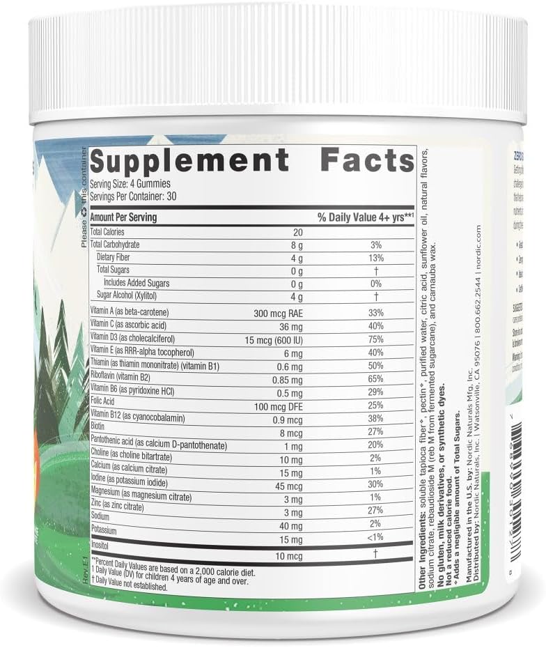 Nutrientes esenciales diarios: las gomitas multivitomitas Zero Sugar Kids proporcionan 18 nutrientes, incluyendo zinc y vitaminas esenciales A, B, C, D3 y E, para ayudar a apoyar el crecimiento y el desarrollo en los primeros años y más allá.