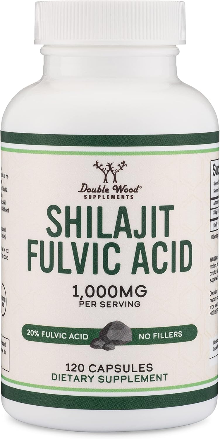 Suplemento de ácido fúlvico al 20%: Double Wood utiliza una forma extremadamente potente de polvo Shilajit del Himalaya que está estandarizado al 20% de ácido fúlvico. (200 mg de ácido fúlvico por porción)