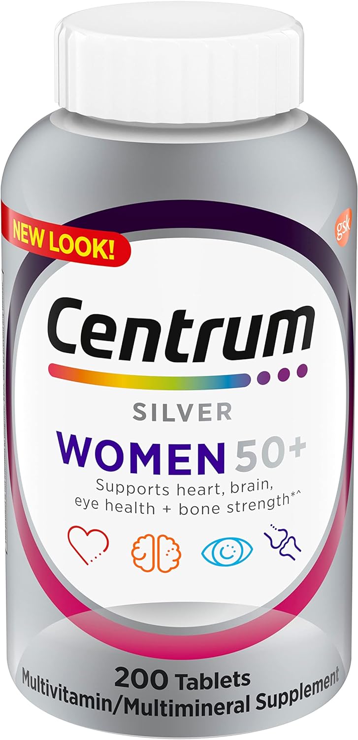 Multivitamínico Centrum Silver para mujer 50 Plus, suplemento multivitamínico/multimineral con vitamina D3, vitaminas B, calcio y vitaminas antioxidantes C, E y betacaroteno y zinc