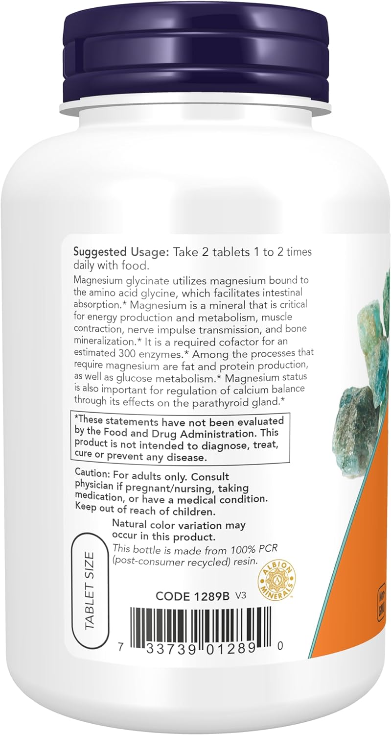 NOW FOODS-MAGNESIUM GLYCINATE Suplementos, glicinato de magnesio 100 mg, forma altamente absorbible.