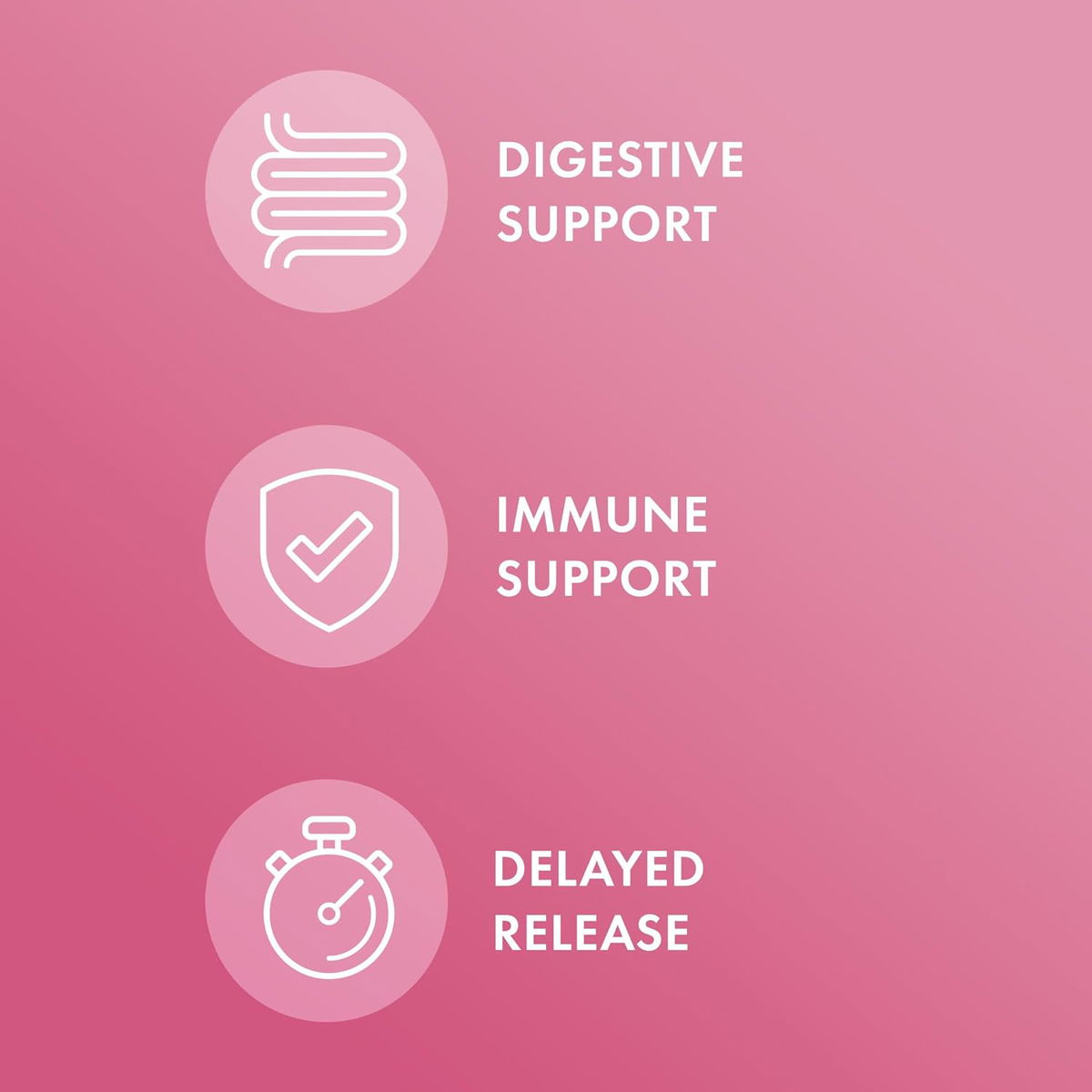 Nuestros probióticos completos para mujeres no requieren refrigeración, por lo que son ideales para viajes, y vienen en cápsulas patentadas de liberación retardada para proporcionar una capa adicional de protección contra los ácidos estomacales agresivos