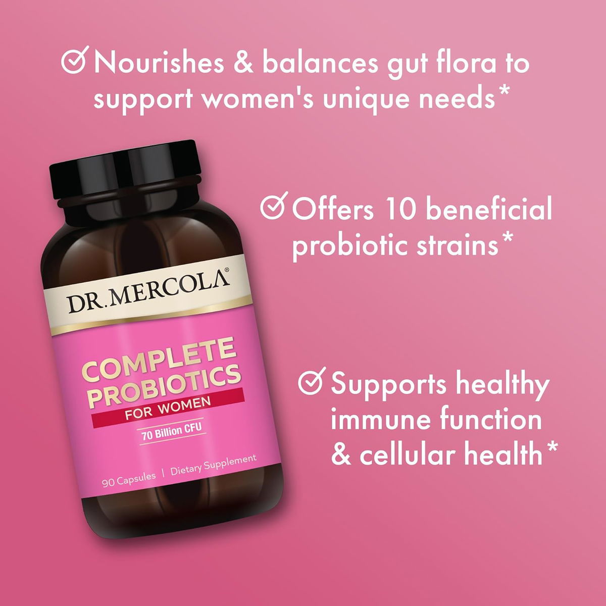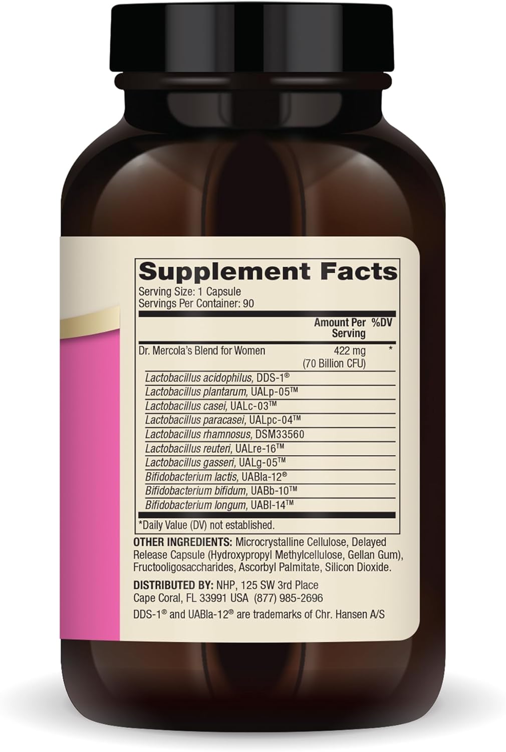Dr. Mercola Probióticos completos para mujeres, 70 mil millones de UFC, , suplemento dietético, apoya la salud digestiva, sin OMG.
