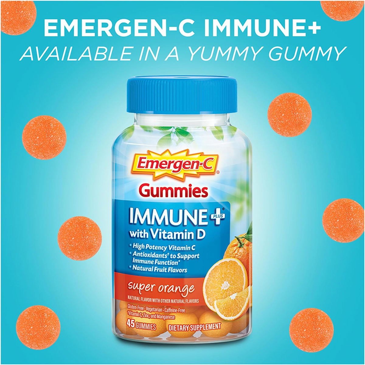 Las gomitas Emergen-C Immune+ están hechas con sabores naturales y edulcorantes, además de sin cafeína y sin gluten.
