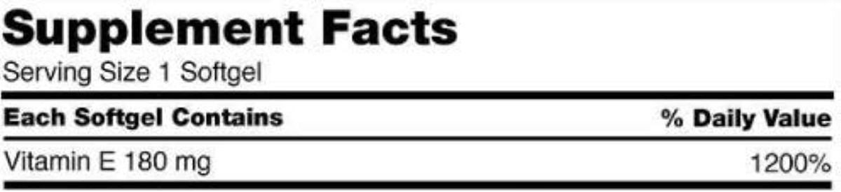 Vitamina E 180 mg, acetato de tocoferilo, gelatina, glicerina, agua.