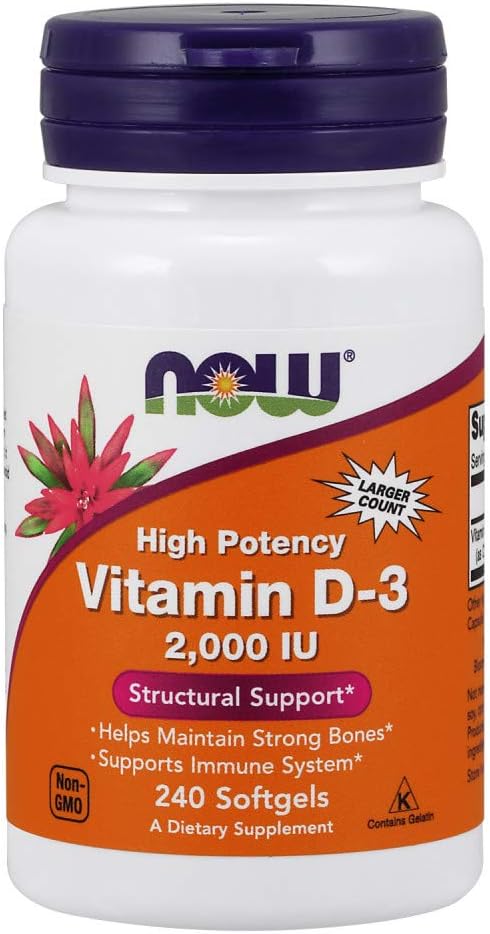 NOW Suplementos, vitamina D-3 2,000 UI, alta potencia, soporte estructural,cápsulas blandas